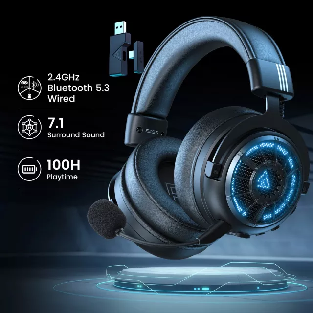 This headset is built with tri-mode connectivity, giving you the freedom to switch between ultra-low latency 2.4GHz wireless, Bluetooth 5.3, and a wired 3.5mm connection with just one button. The 50mm drivers and dual-chamber design bring rich bass, clear mids, and precise highs, while the 7.1 virtual surround sound ensures you can pinpoint every detail in your game. The detachable ENC noise-cancelling microphone filters out background noise, so your voice comes through loud and clear during team chats or calls.